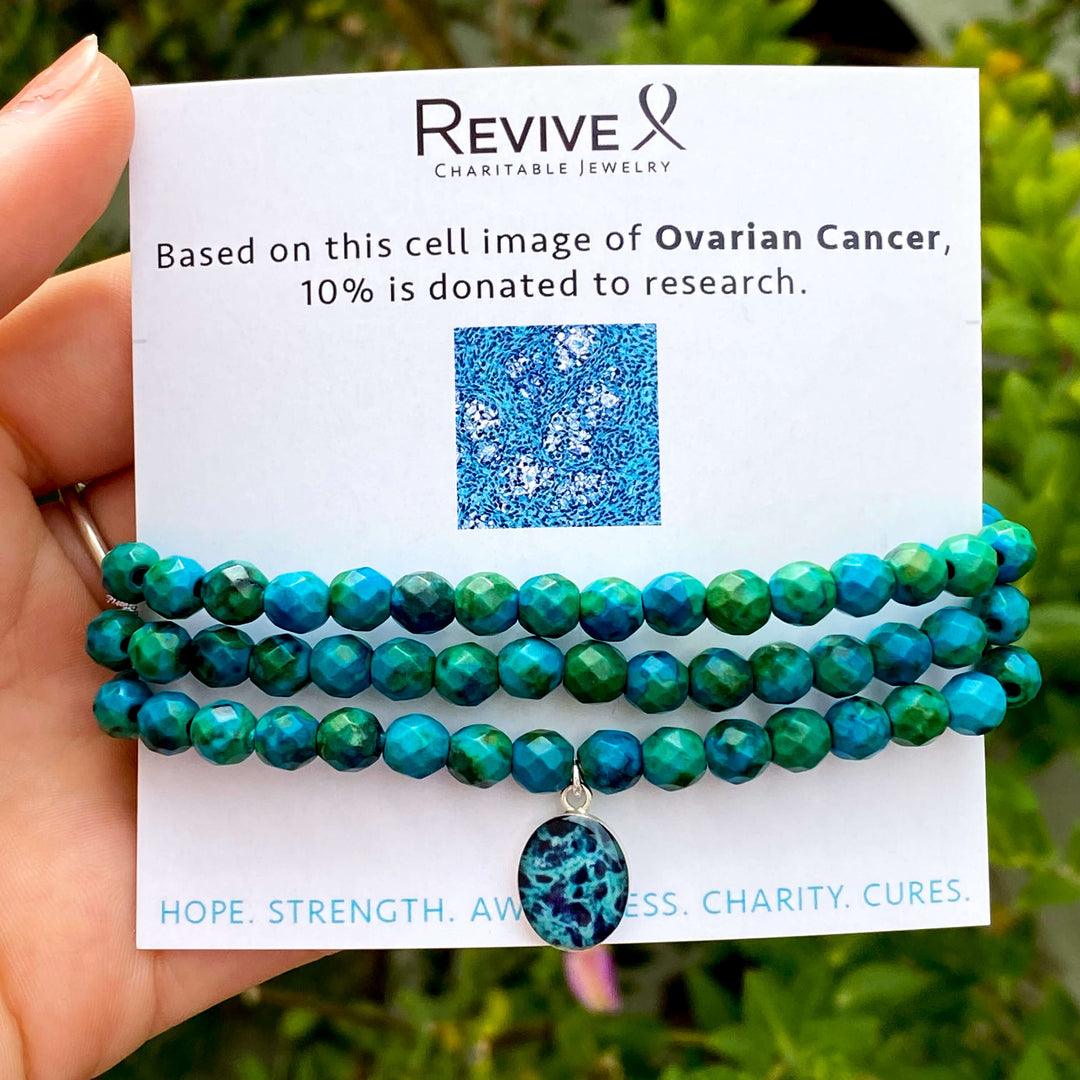 When you purchase this ovarian cancer awareness jewelry, 10% of the purchase price is donated to the Ovarian Cancer Research Alliance. This organization is committed to advancing ovarian cancer research, improving patient care, and advocating for more funding and resources. Your purchase helps accelerate the search for a cure and provides vital support to those affected by ovarian cancer. Learn more about the Ovarian Cancer Research Alliance here. For more on how we support this cause, click here.