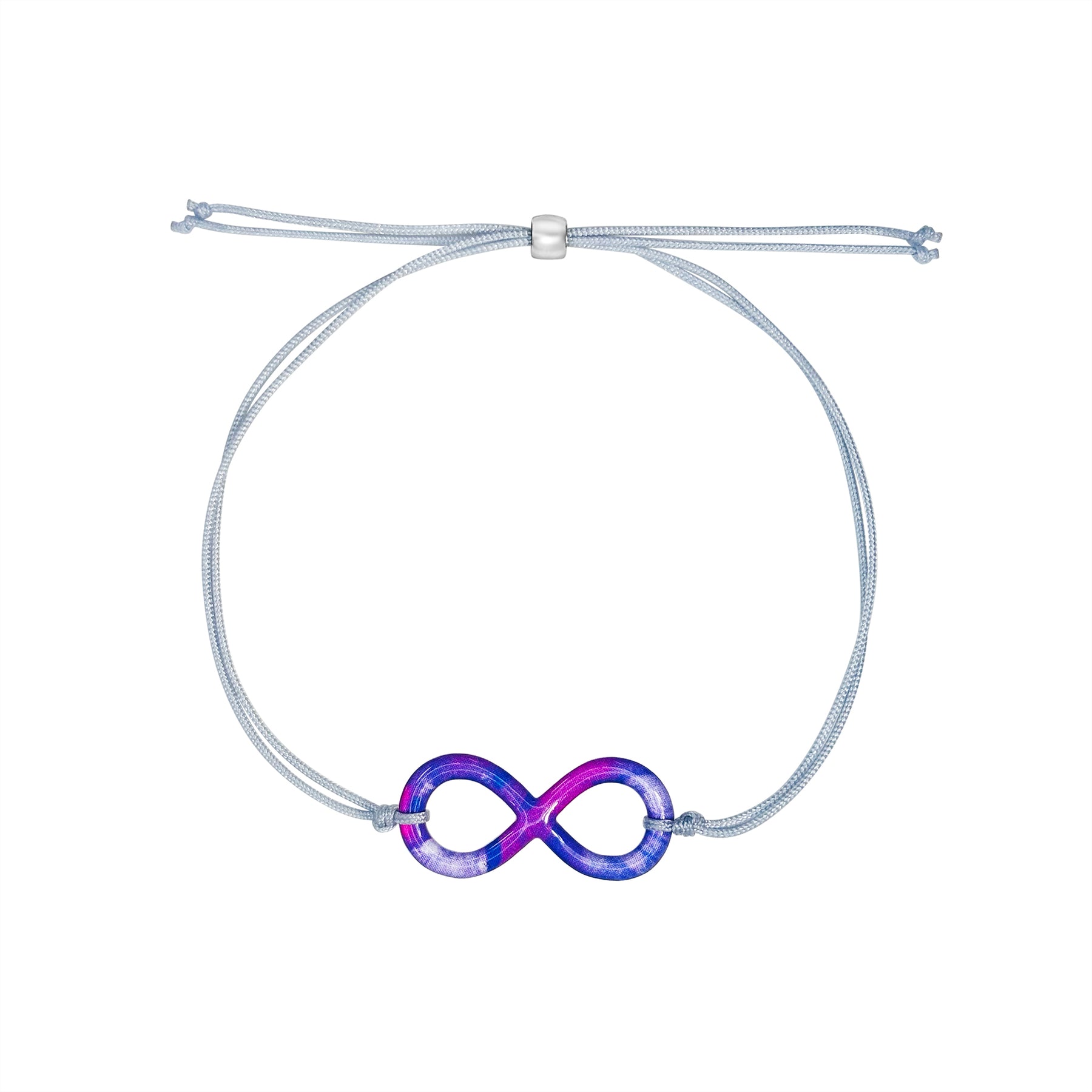 Handcrafted with a cell image of Lung Cancer, the infinity charm is cut out and encased in clear resin, transforming science into art. The design is finished with a durable, adjustable gray cord and a sterling silver slide clasp, offering both comfort, ease and elegance for everyday wear.