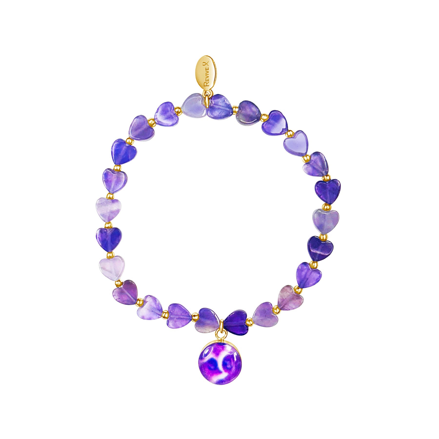 Crafted with sweet heart-shaped Purple Amethyst and small sterling silver or gold beads with a round pendant that contains a Pancreatic Cancer cell image under resin. Stretchy and effortless to wear, it wraps you in the feeling of being seen, supported and held. It's a gentle way to fill the space left behind with purpose, with love and with the reminder that your story still has so much beauty to tell.