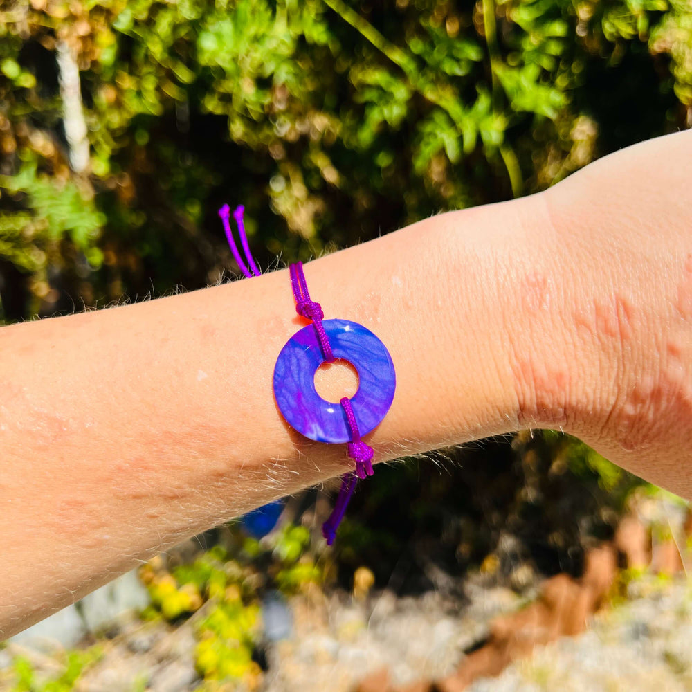 This bracelet features purple adjustable nylon cord that fits wrists from 5 to 9 inches. The large round Life Saver pendant is based on a cell image of Lupus coated in resin. These awareness bracelets are so lightweight and easy to wear, they will quickly become your new favorite accessory to wear alone or layered up.
