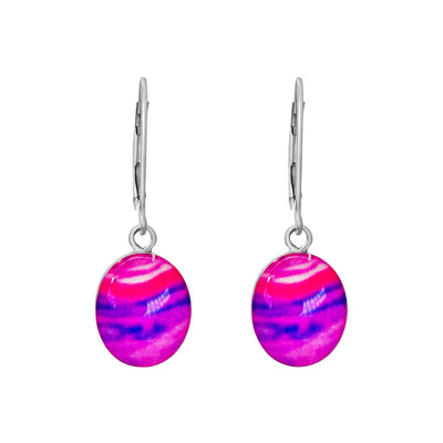 Inspired by all the stories of lives taken too soon by this disease, these earrings feature sterling silver or 14k gold filled oval pendants with hand cut cell images of Lupus in resin. Finished with secure lever back closures so you know they'll stay on all day long.