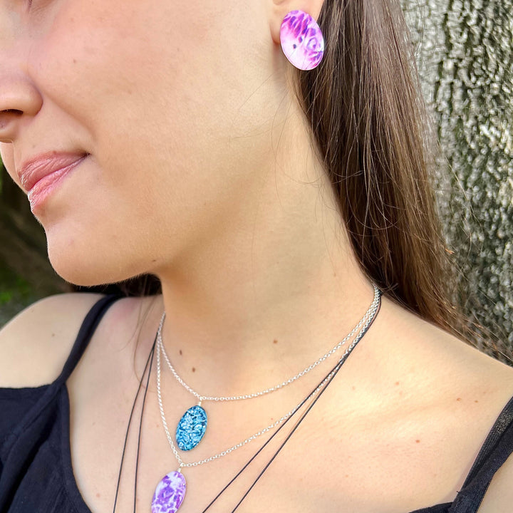 Sterling Silver Diabetes Awareness necklace with large oval resin pendant