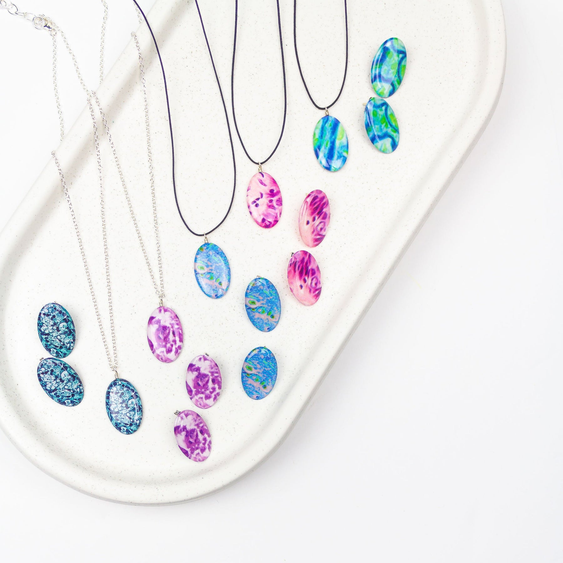 We transform cell images, or histology slides, into stunning charity jewelry. By revealing the unexpected beauty within disease, we create pieces that spark hope, spread awareness, and create positive change. Every purchase gives back to fund research or support patients, and moves us closer to cures.