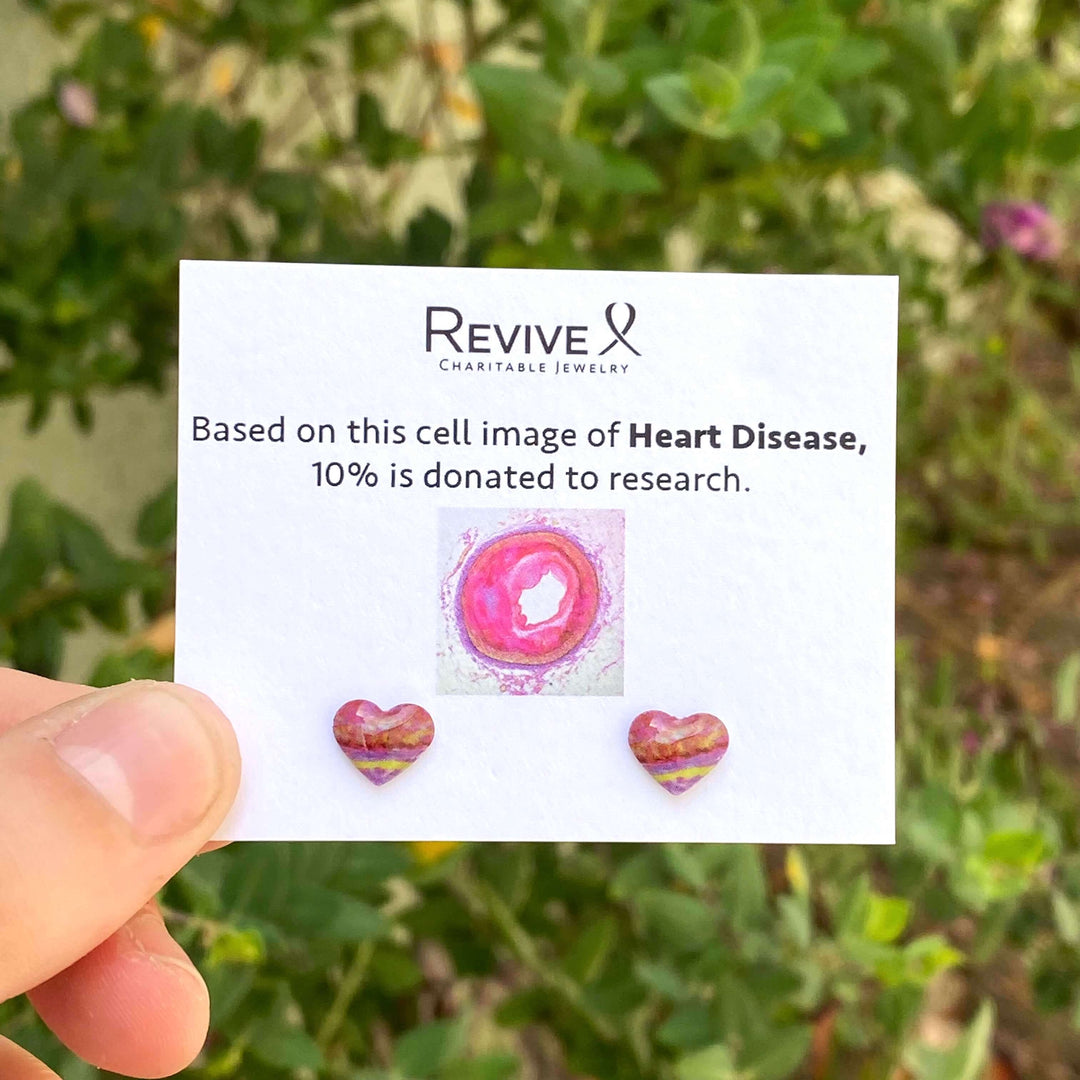 • Heart Shaped Heart Disease Cell Image Pendant measures: 1 inch x 5/8 inch