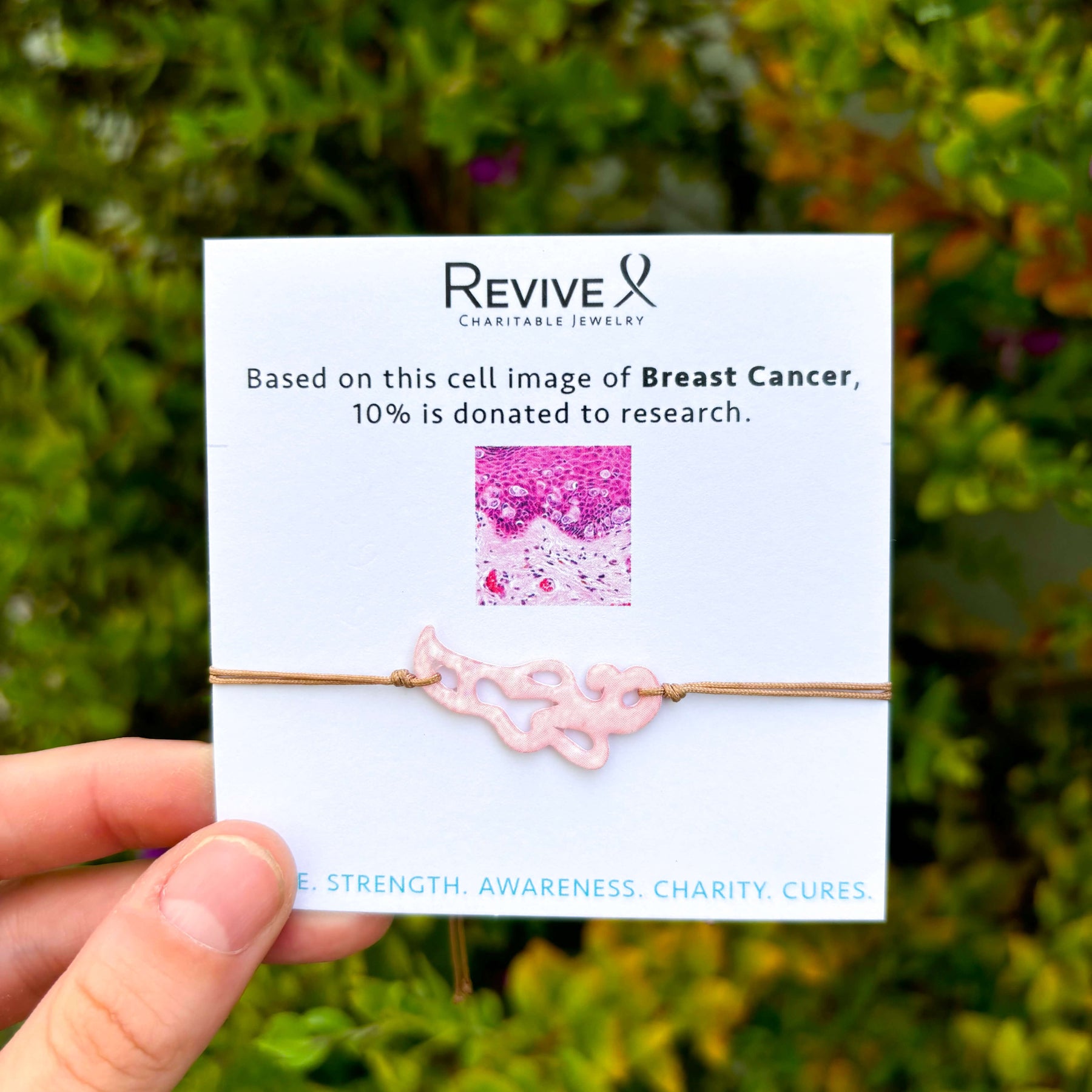 We transform cell images, or histology slides, into stunning charity jewelry. By revealing the unexpected beauty within disease, we create pieces that spark hope, spread awareness, and create positive change. Every purchase gives back to fund research or support patients, and moves us closer to cures.