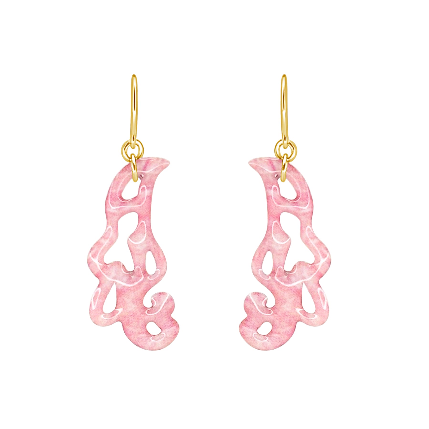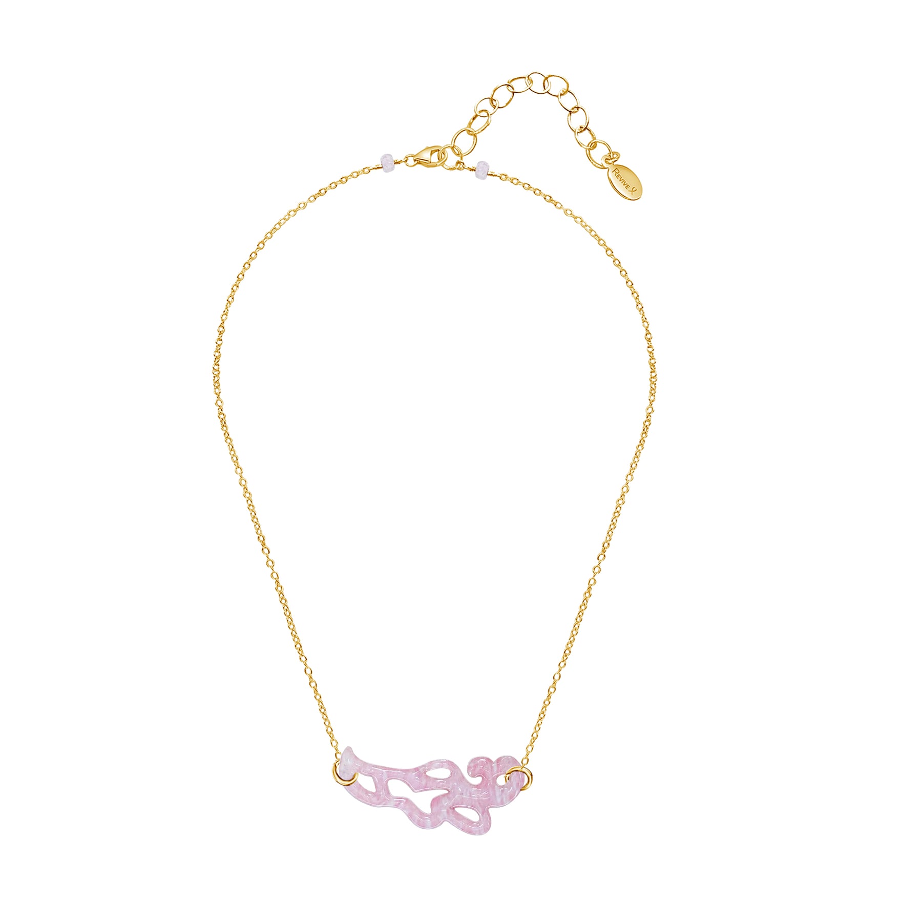 pink paisley shaped breast cancer cell image in resin pendant on gold filled adjustable chain