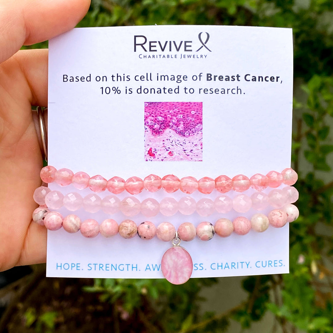 For every purchase of the breast cancer necklace, 10% of the purchase price is donated to the Breast Cancer Research Foundation. To read more about BCRF & how your donation is making an impact, click here.
