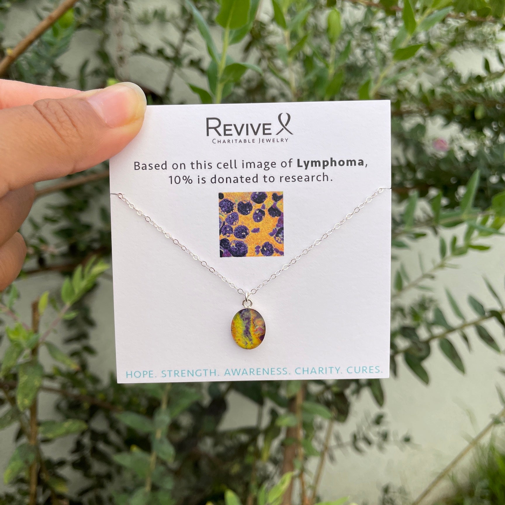 handmade sterling silver necklace for lymphoma awareness on revive jewelry card