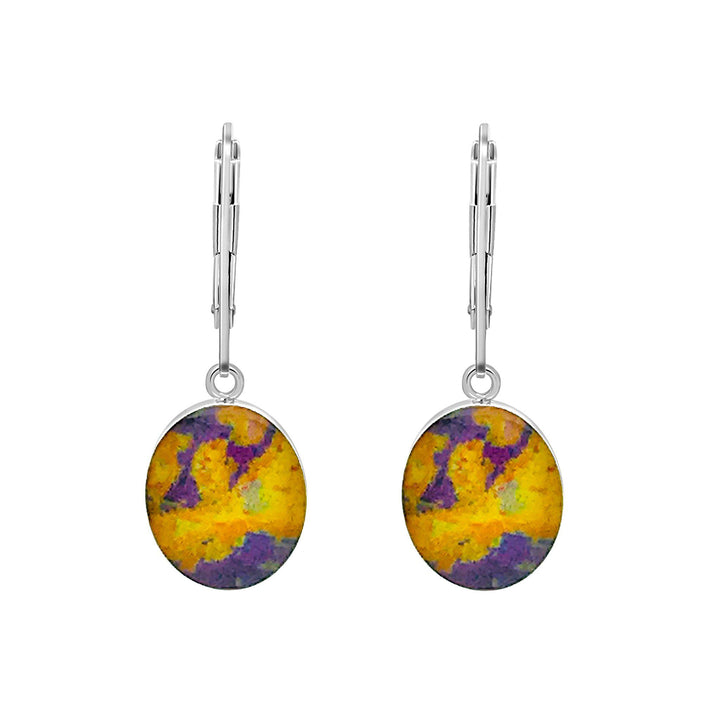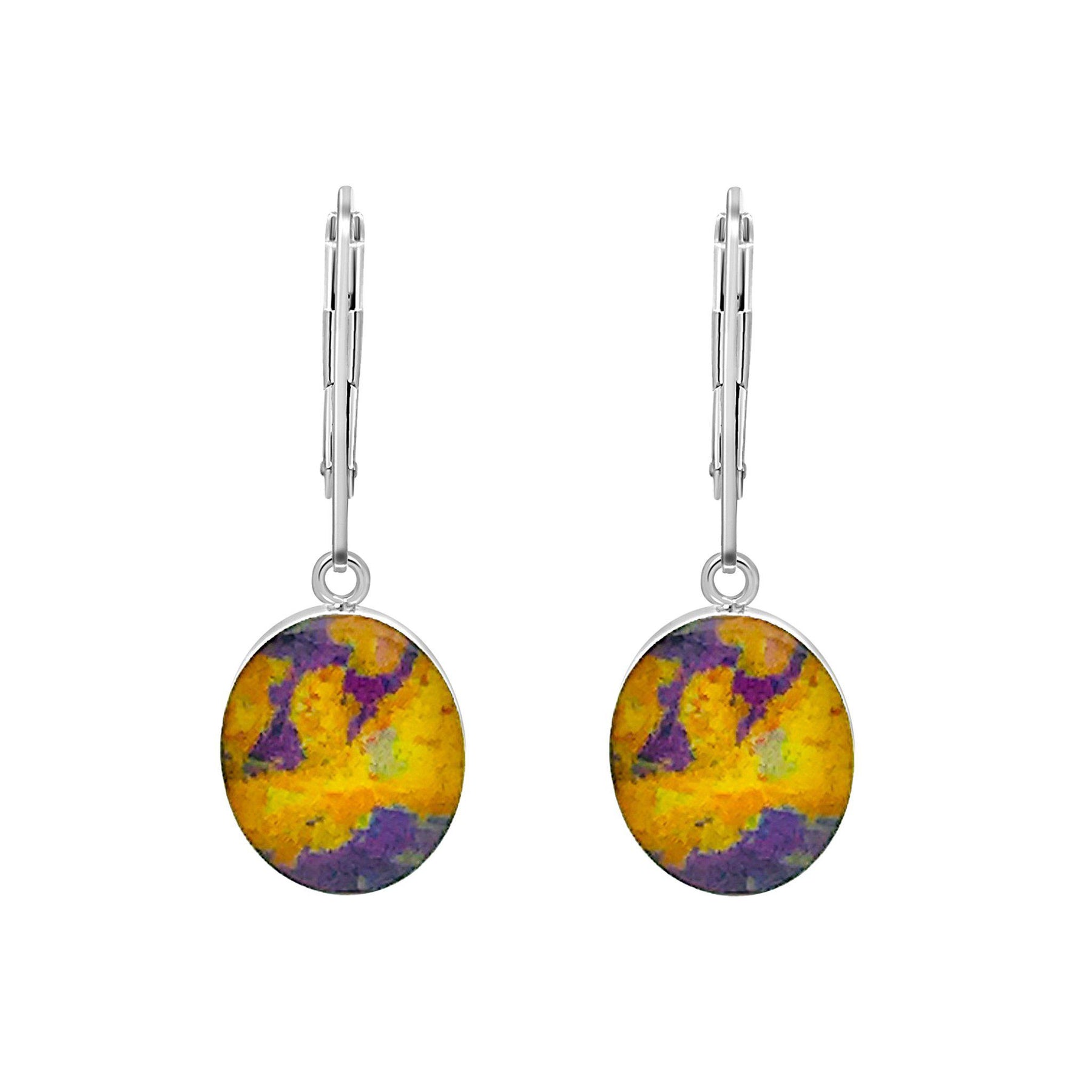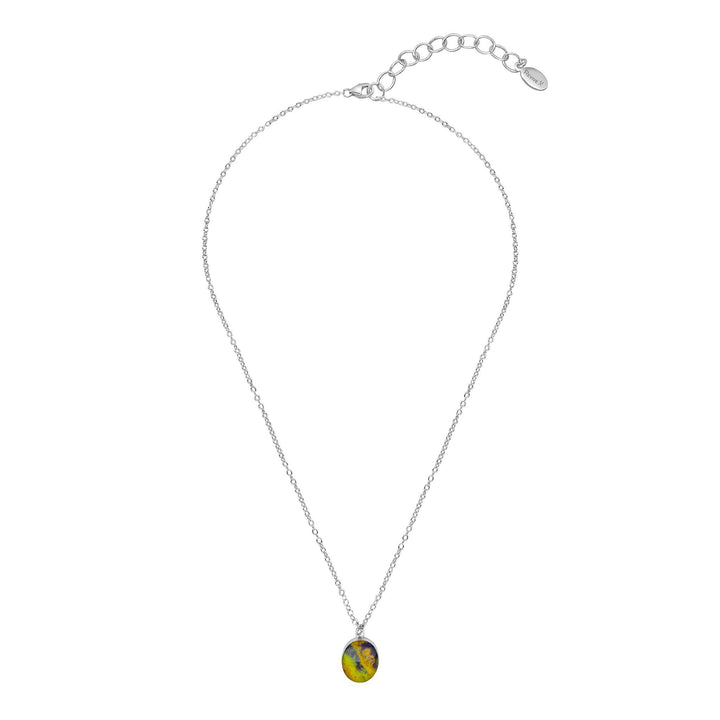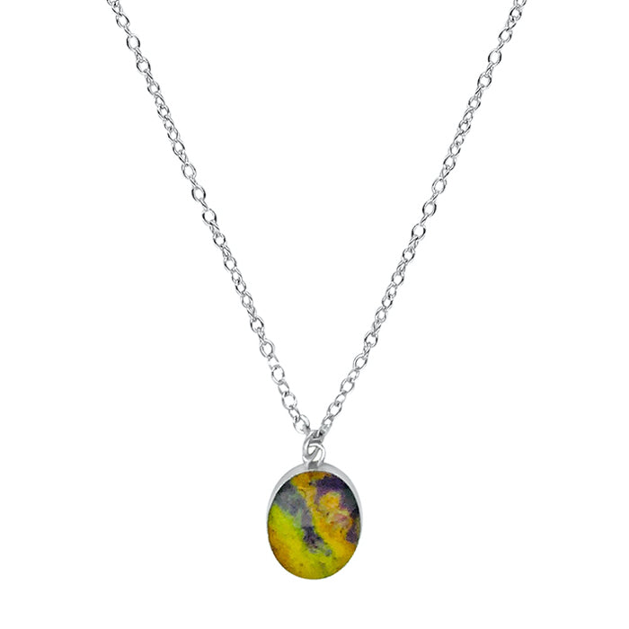 Lymphoma awareness necklace with purple and yellow oval pendant on chain gives back to charity