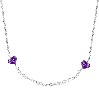 These adorable heart shaped pendants are made with resin over the top of a cell image of Pancreatic Cancer. The necklace features a section of heart shaped chain and two sparkly faceted amethyst stones at the back. This necklace is an adjustable short choker style that is lightweight and adorable so you can wear it everyday!