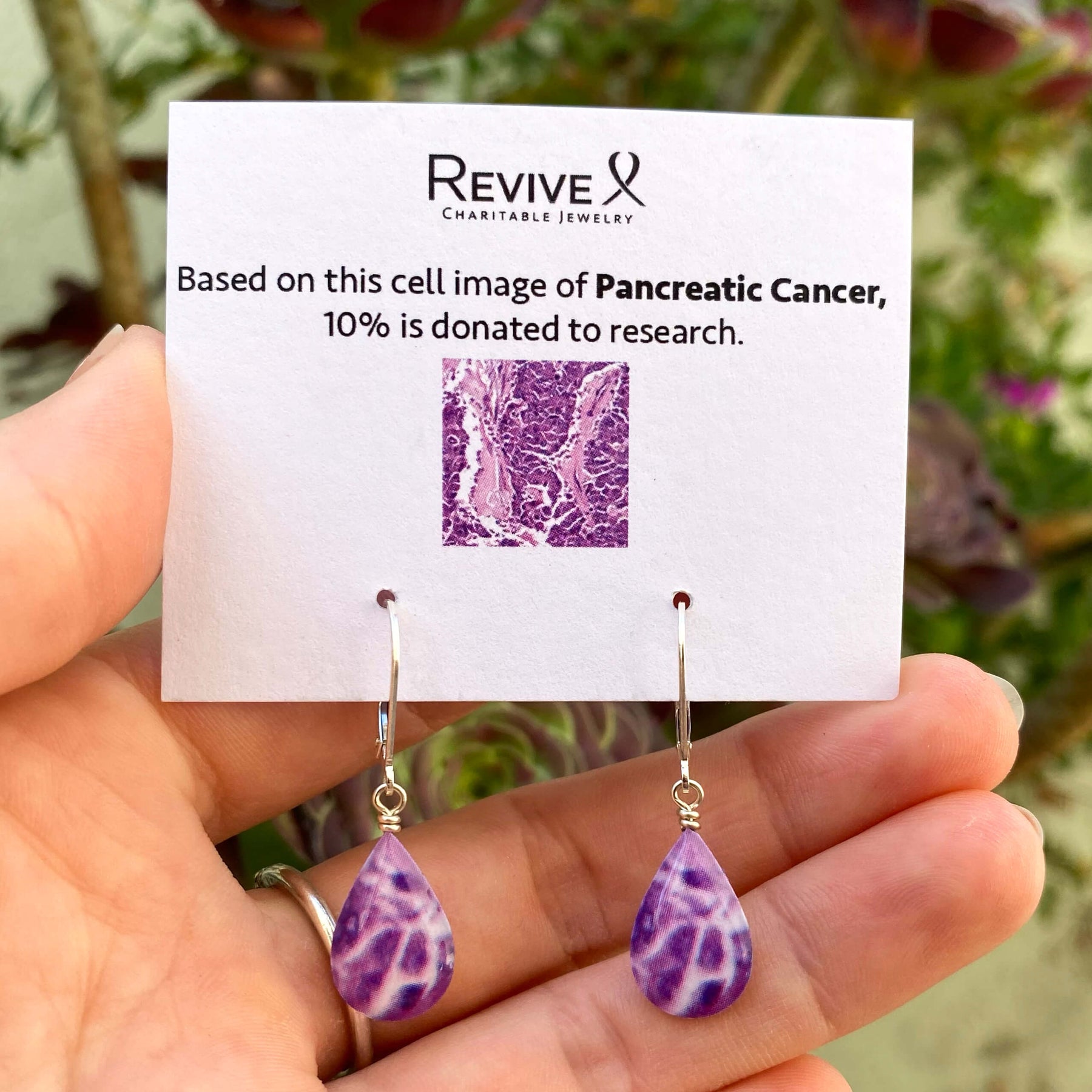 For each pair of Pancreatic Cancer earrings sold, 10% of the purchase price is donated to Pancreatic Cancer Action Network. Revive Jewelry partners with PanCAN to fund necessary research and double the survival rate of this deadly cancer. To read more about them & how your donation makes an impact, click here.